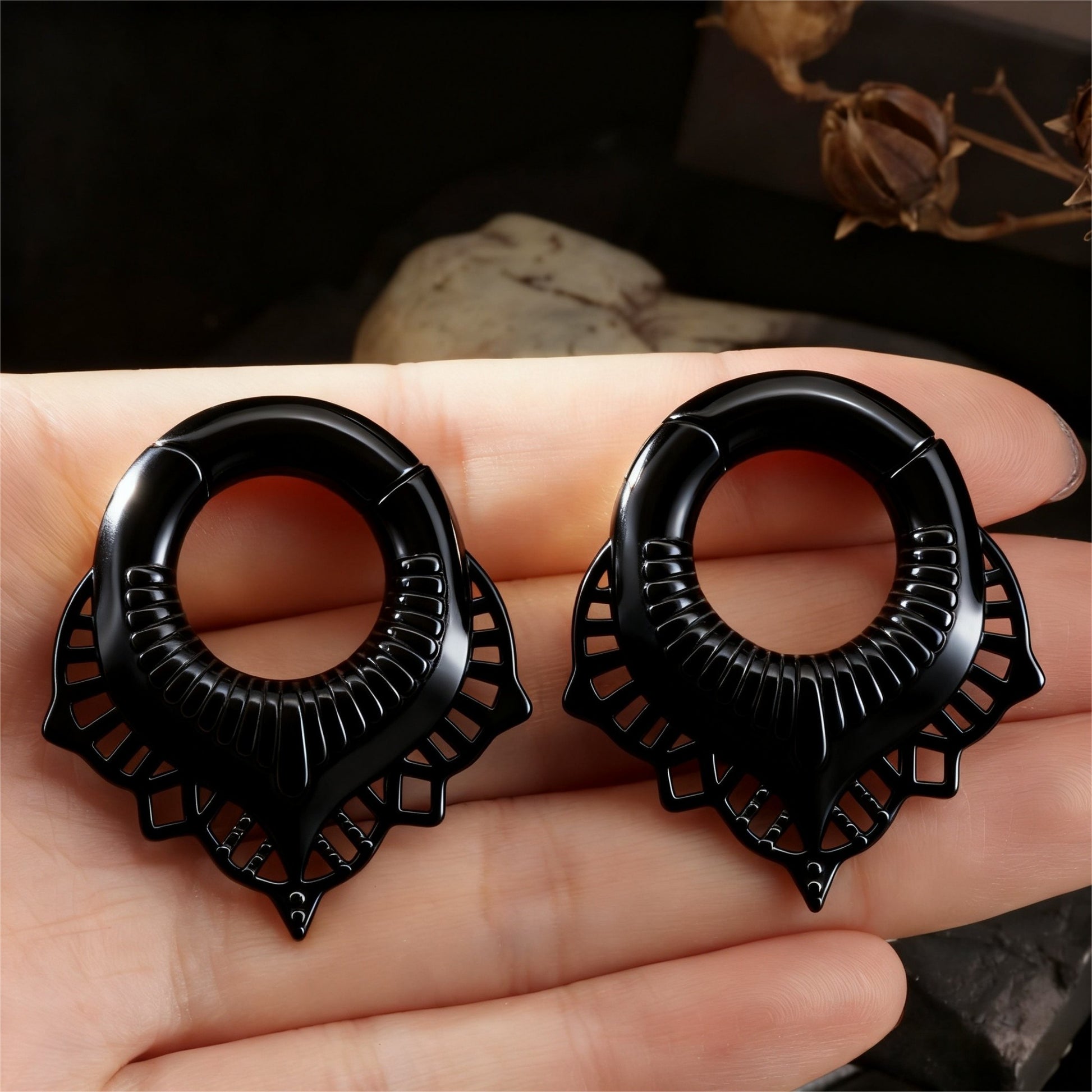 Wear them through your healed stretched lobes or hang them through your tunnels.