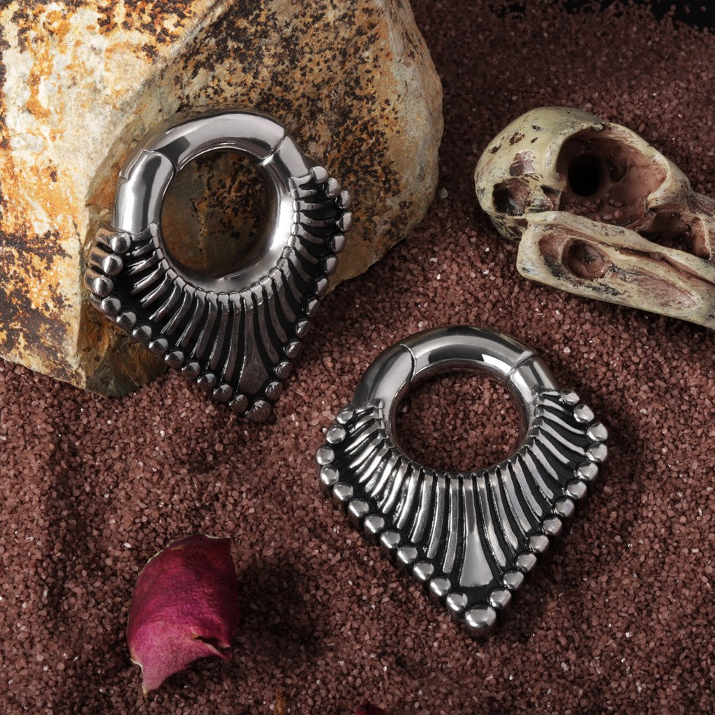 ✧V-shaped Ear Stretcher Hoop with a classic pattern.